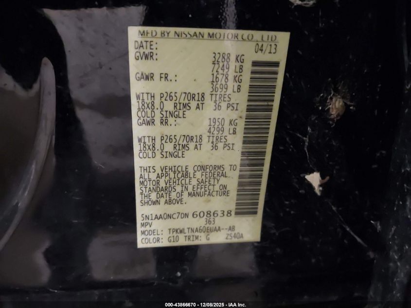 2013 NISSAN ARMADA - 5N1AA0NC7DN608638, колір - Чорний, 5.6, Бензин, Повний привід із США