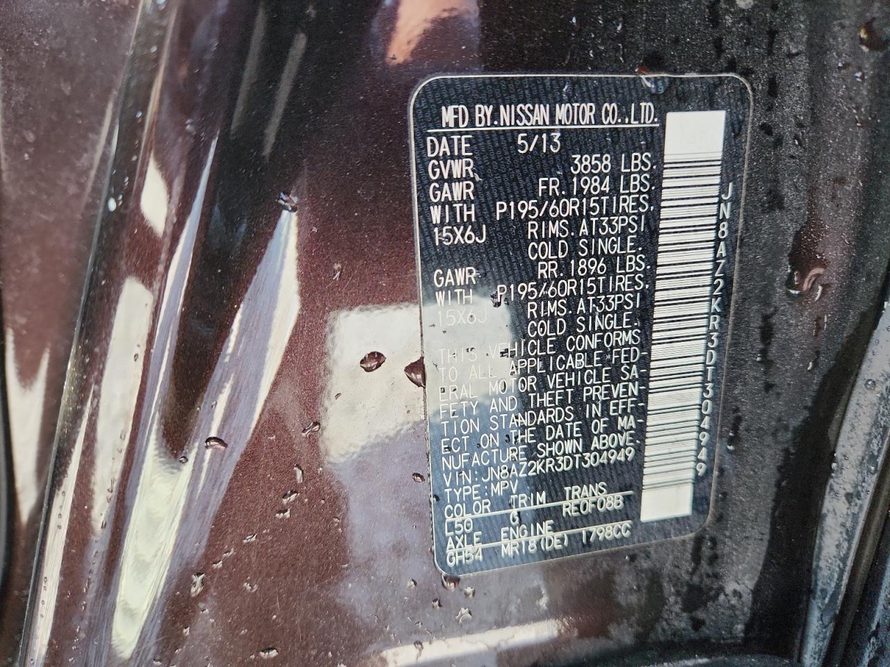 2013 NISSAN CUBE - JN8AZ2KR3DT304949, колір - Бургундія, 1.8, Бензин, із США