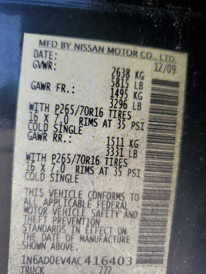 2010 NISSAN FRONTIER - 1N6AD0EV4AC416403, колір - Чорний, 4.0, Бензин, 4x4 з заднім приводом із США