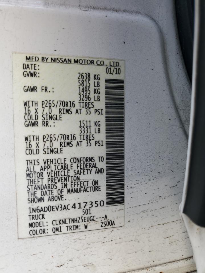 2010 NISSAN FRONTIER - 1N6AD0EV3AC417350, колір - Білий, 4.0, Бензин, 4x4 з заднім приводом із США