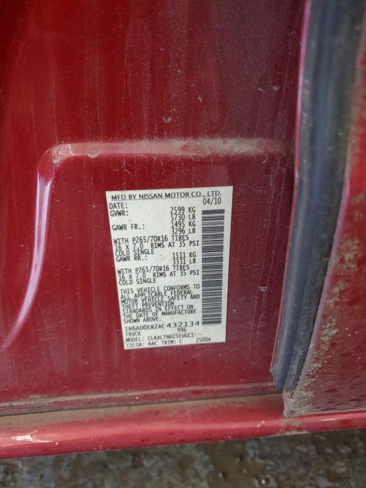 2010 NISSAN FRONTIER - 1N6AD0ER2AC432134, колір - Червоний, 4.0, Бензин, Задній привід із США