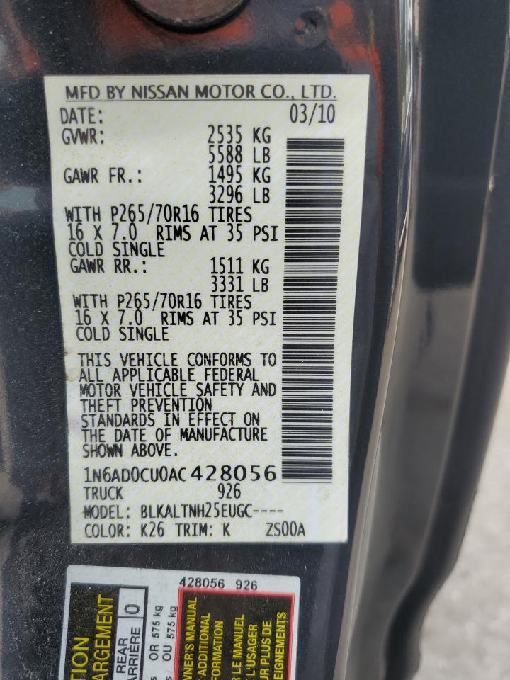 2010 NISSAN FRONTIER - 1N6AD0CU0AC428056, колір - Сірий, 4.0, Бензин, Задній привід із США