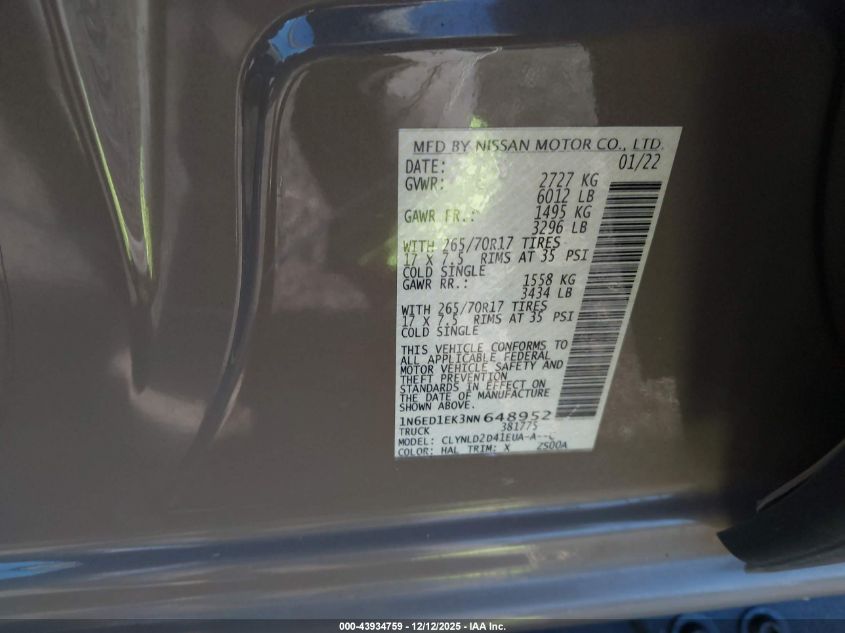 2022 NISSAN FRONTIER - 1N6ED1EK3NN648952, колір - Сірий, 3.8, Бензин, Повний привід із США
