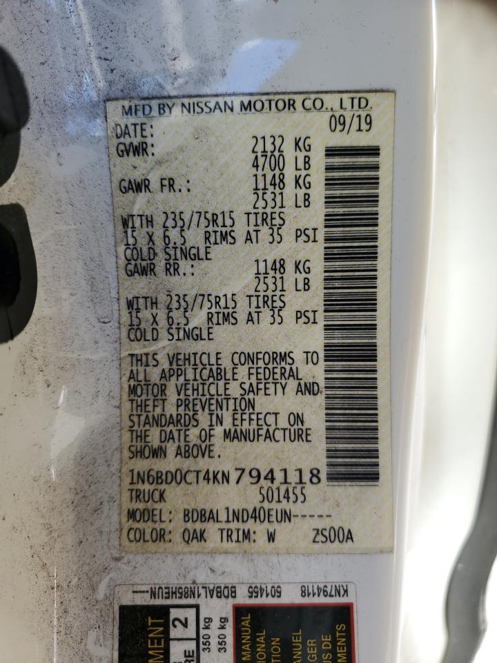 2019 NISSAN FRONTIER - 1N6BD0CT4KN794118, колір - Білий, 2.5, Бензин, Задній привід із США