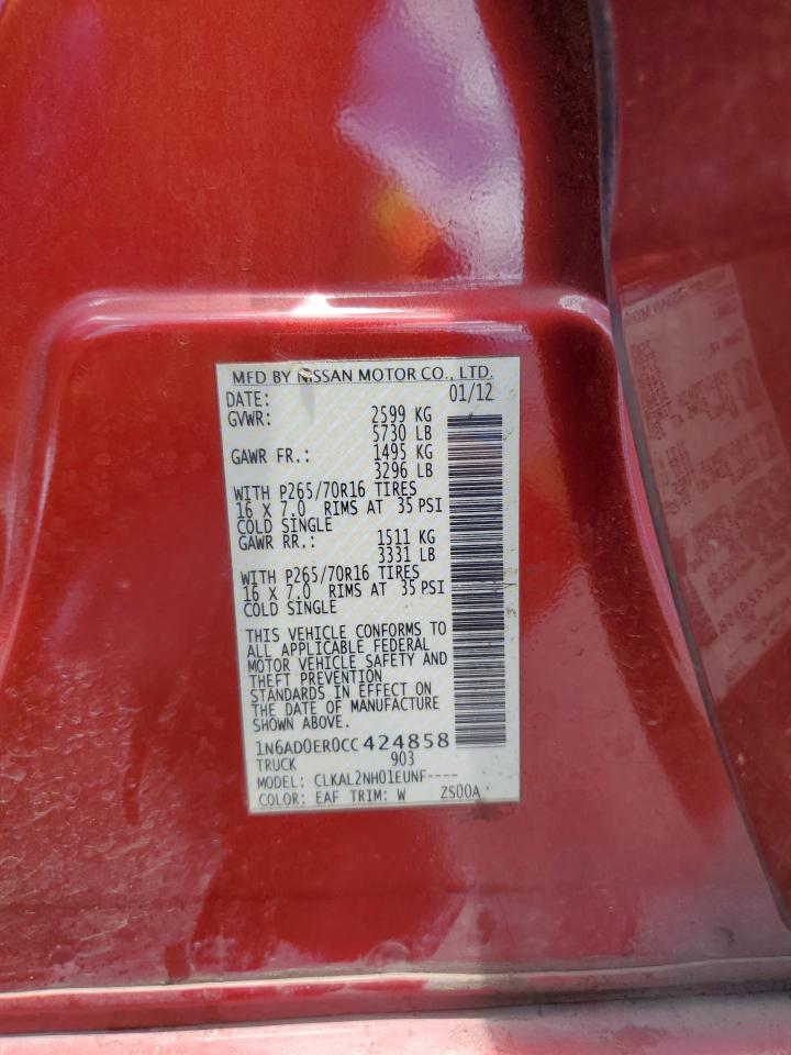 2012 NISSAN FRONTIER - 1N6AD0ER0CC424858, колір - Бордовий, 4.0, Бензин, Задній привід із США