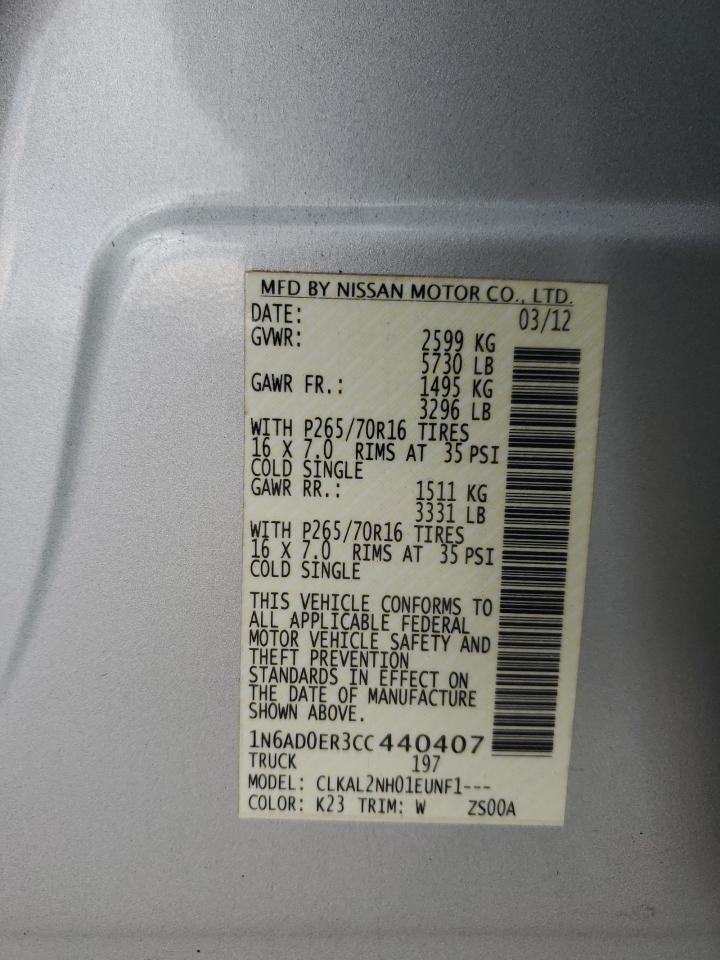 2012 NISSAN FRONTIER - 1N6AD0ER3CC440407, колір - Срібний, 4.0, Бензин, Задній привід із США
