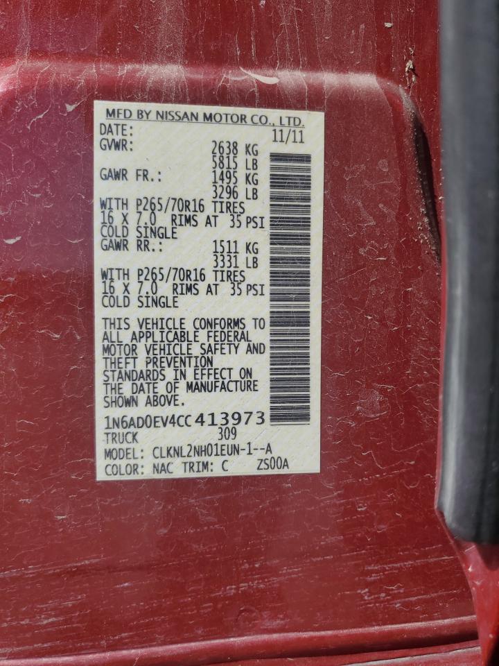 2012 NISSAN FRONTIER - 1N6AD0EV4CC413973, колір - Червоний, 4.0, Бензин, 4x4 з заднім приводом із США