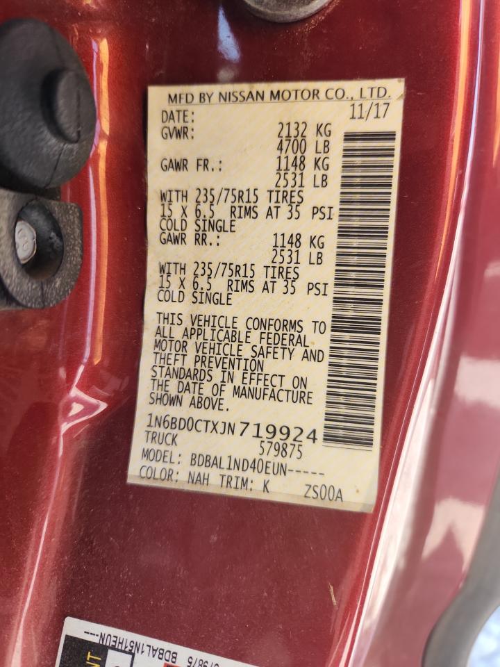 2018 NISSAN FRONTIER - 1N6BD0CTXJN719924, колір - Червоний, 2.5, Бензин, Задній привід із США