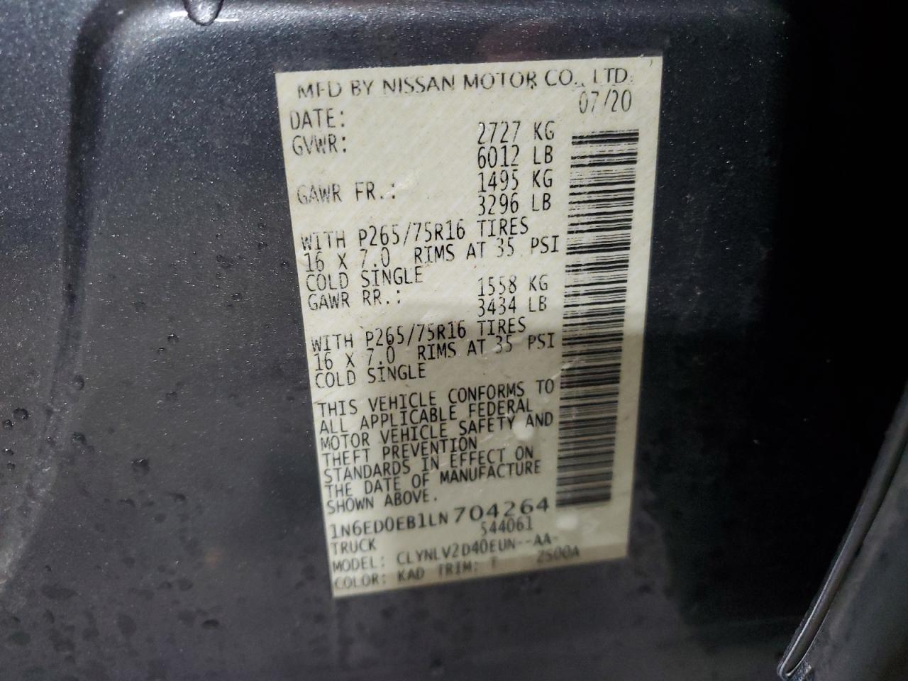 2020 NISSAN FRONTIER - 1N6ED0EB1LN704264, колір - Сірий, 3.8, Бензин, 4x4 з заднім приводом із США