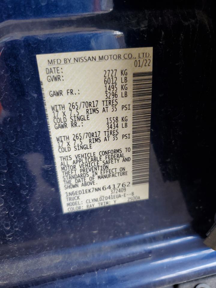 2022 NISSAN FRONTIER - 1N6ED1EK7NN641762, колір - Синій, 3.8, Бензин, 4x4 з заднім приводом із США