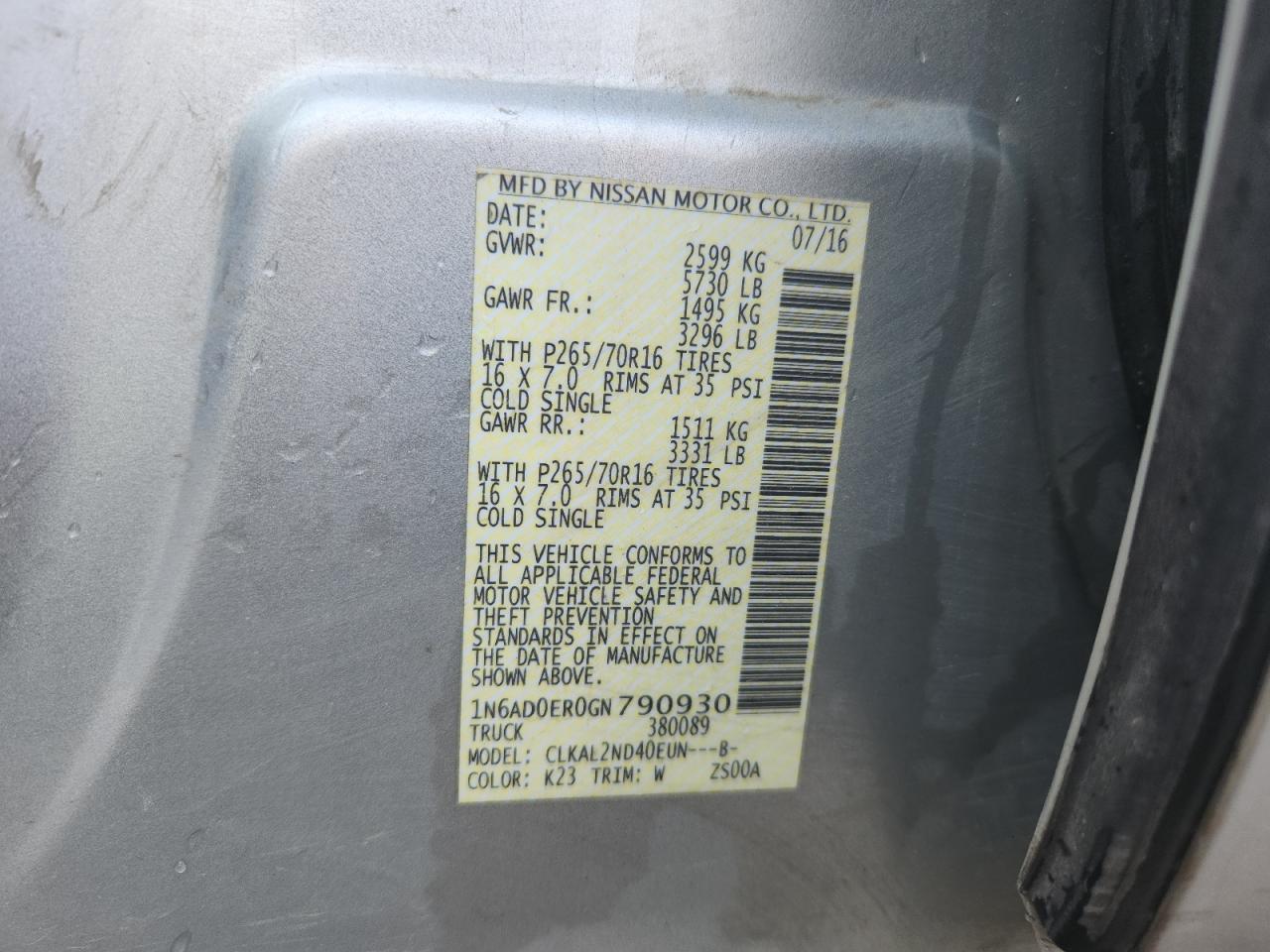2016 NISSAN FRONTIER - 1N6AD0ER0GN790930, колір - Срібний, 4.0, Бензин, Задній привід із США