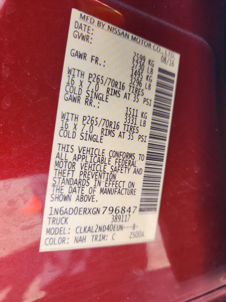 2016 NISSAN FRONTIER - 1N6AD0ERXGN796847, колір - Бордовий, 4.0, Бензин, Задній привід із США