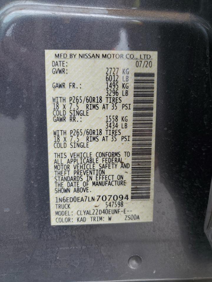 2020 NISSAN FRONTIER - 1N6ED0EA7LN707094, колір - Сірий, 3.8, Бензин, Задній привід із США