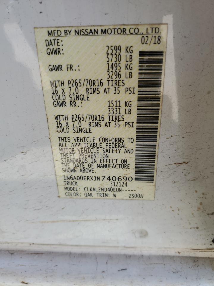 2018 NISSAN FRONTIER - 1N6AD0ERXJN740690, колір - Білий, 4.0, Бензин, Задній привід із США