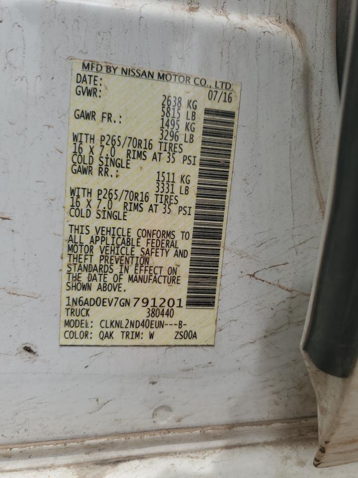 2016 NISSAN FRONTIER - 1N6AD0EV7GN791201, колір - Білий, 4.0, Бензин, 4x4 з заднім приводом із США