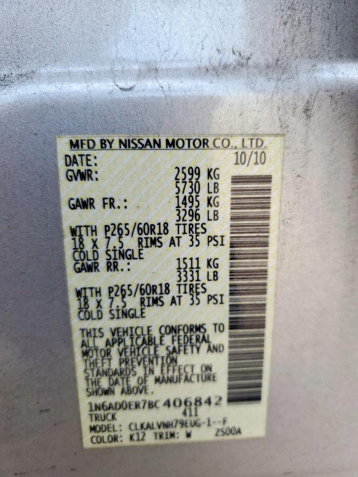 2011 NISSAN FRONTIER - 1N6AD0ER7BC406842, колір - Срібний, 4.0, Бензин, Задній привід із США