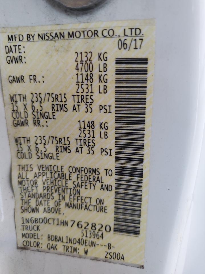 2017 NISSAN FRONTIER - 1N6BD0CT1HN762820, колір - Білий, 2.5, Бензин, Задній привід із США