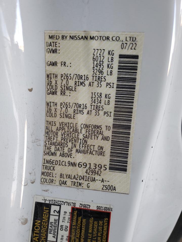 2022 NISSAN FRONTIER - 1N6ED1CL9NN691395, колір - Білий, 3.8, Бензин, Задній привід із США