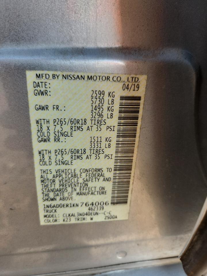 2019 NISSAN FRONTIER - 1N6AD0ER1KN764006, колір - Срібний, 4.0, Бензин, Задній привід із США