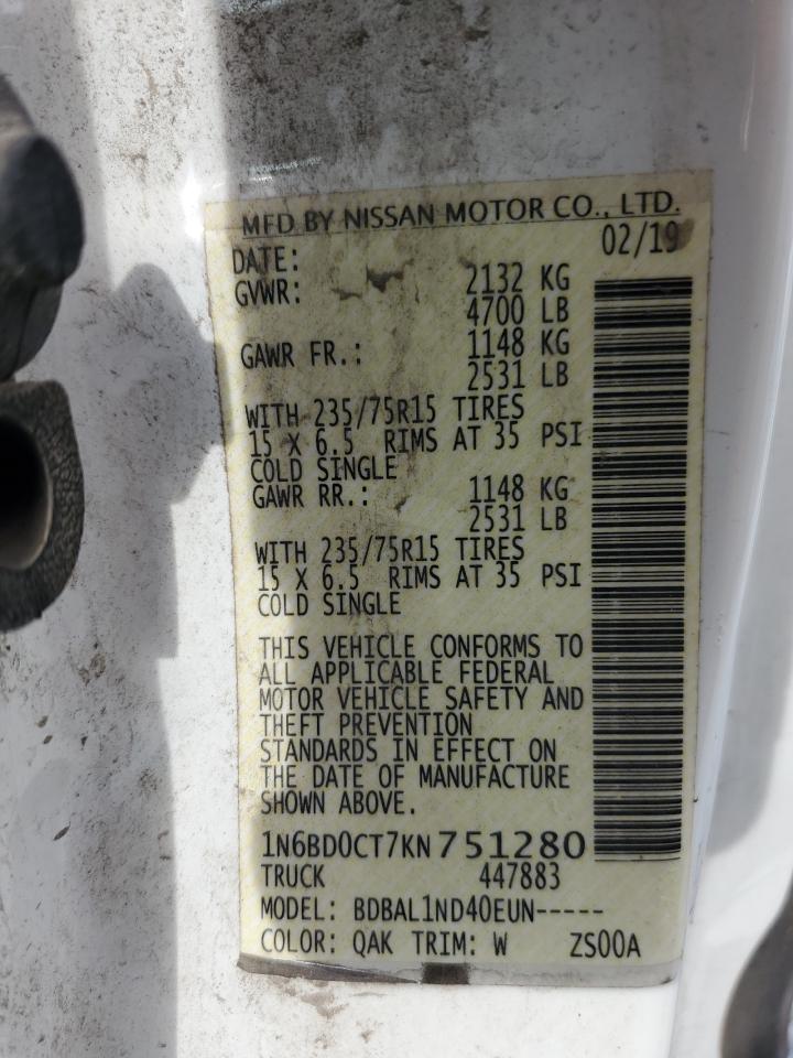 2019 NISSAN FRONTIER - 1N6BD0CT7KN751280, колір - Білий, 2.5, Бензин, Задній привід із США