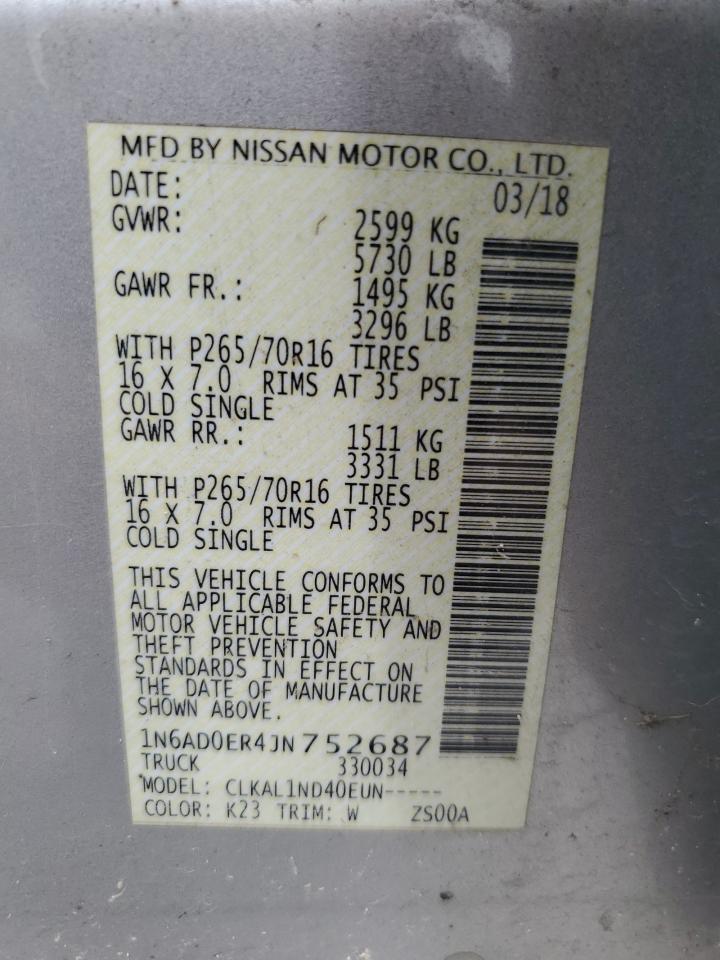 2018 NISSAN FRONTIER - 1N6AD0ER4JN752687, колір - Срібний, 4.0, Бензин, Задній привід із США