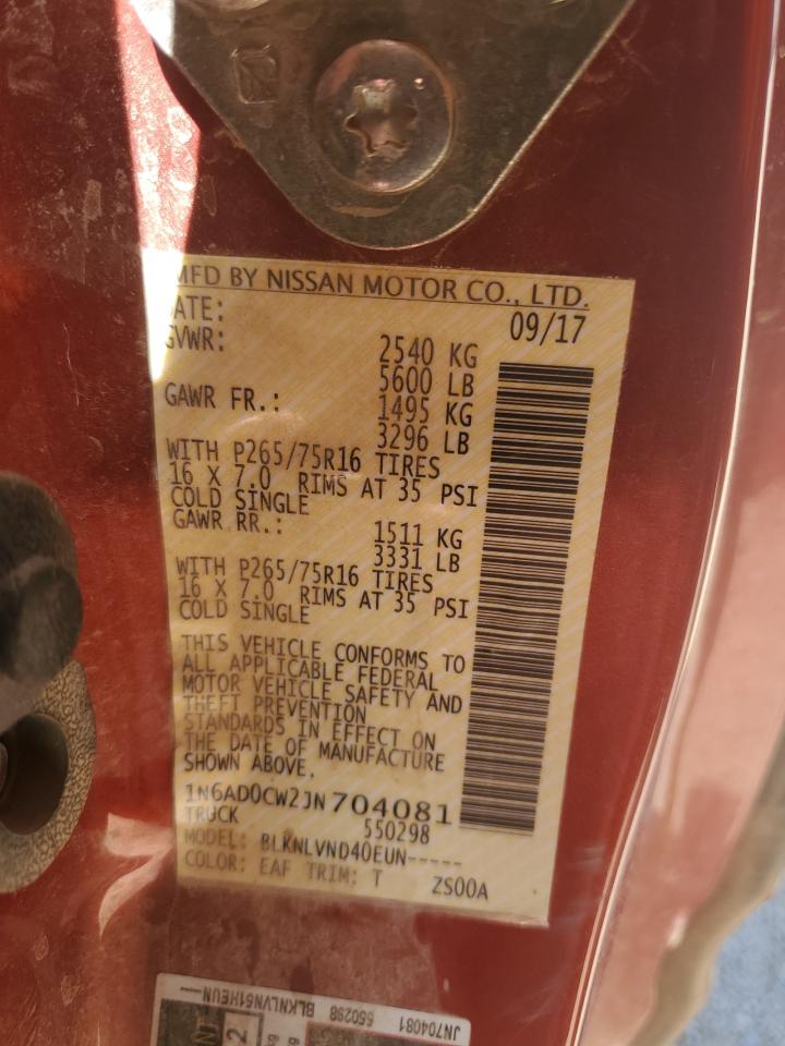 2018 NISSAN FRONTIER - 1N6AD0CW2JN704081, колір - Червоний, 4.0, Бензин, 4x4 з заднім приводом із США