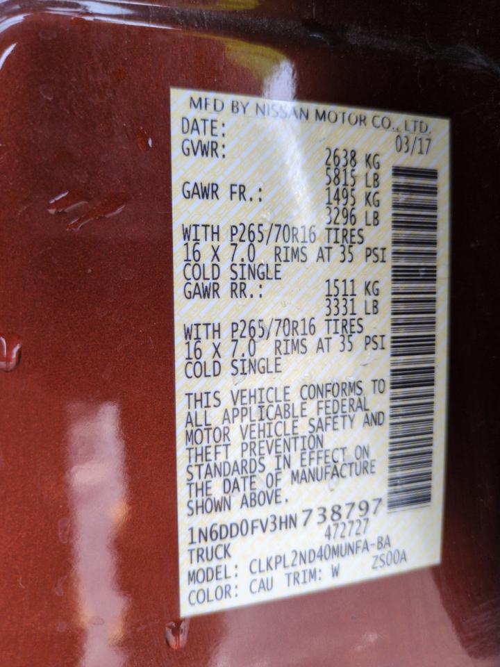 2017 NISSAN FRONTIER - 1N6DD0FV3HN738797, колір - Коричневий, 4.0, Бензин, 4x4 з заднім приводом із США