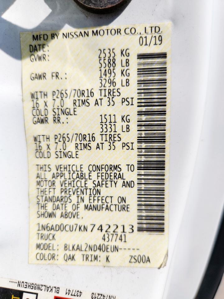 2019 NISSAN FRONTIER - 1N6AD0CU7KN742213, колір - Білий, 4.0, Бензин, Задній привід із США