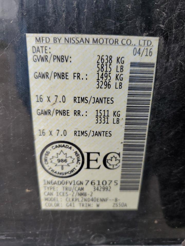 2016 NISSAN FRONTIER - 1N6AD0FV1GN761075, колір - Чорний, 4.0, Бензин, 4x4 з заднім приводом із США