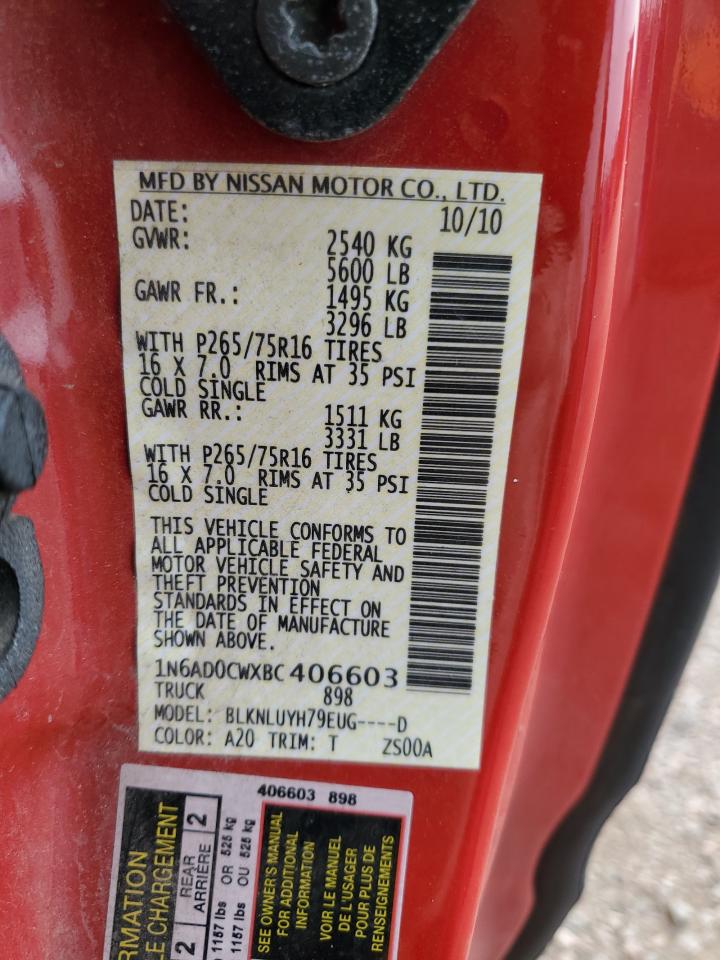 2011 NISSAN FRONTIER - 1N6AD0CWXBC406603, колір - Червоний, 4.0, Бензин, 4x4 з заднім приводом із США