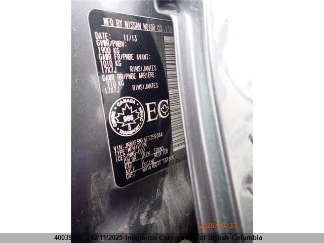 Колір СірийЦиліндри 4Привід Повний привідVIN JN8AF5MV6ET359384Стан СтаціонарноУшкодження Передня праваДата аукціона 2025-12-15