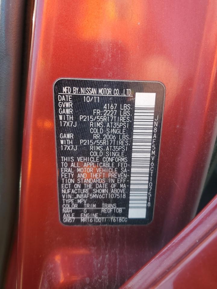 2012 NISSAN JUKE - JN8AF5MV6CT107518, колір - Червоний, 1.6, Бензин, Повний привід із США