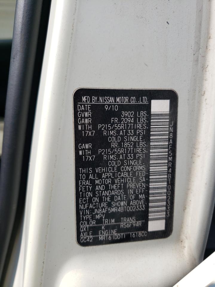 2011 NISSAN JUKE - JN8AF5MR4BT002333, колір - Кремовий, 1.6, Бензин, із США