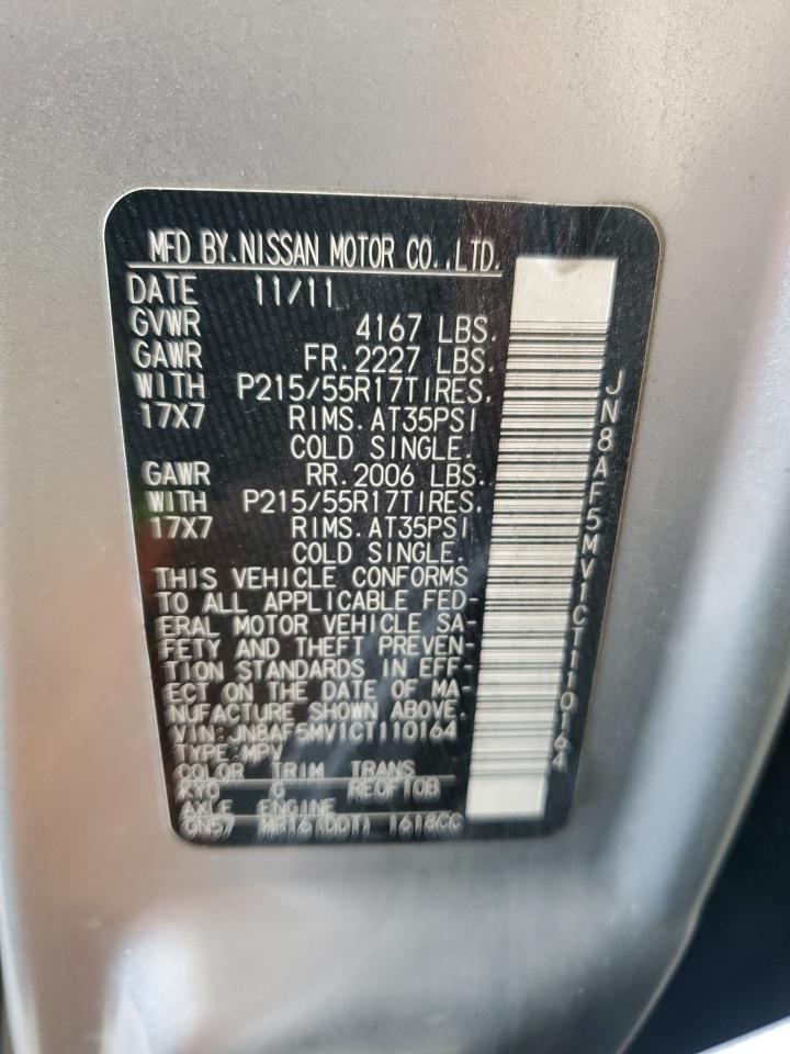 2012 NISSAN JUKE - JN8AF5MV1CT110164, колір - Срібний, 1.6, Бензин, Повний привід із США