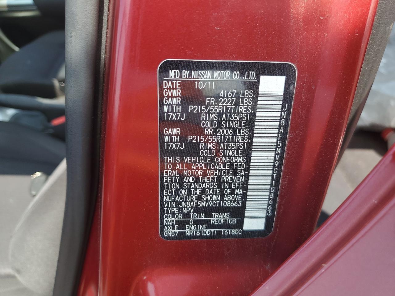 2012 NISSAN JUKE - JN8AF5MV9CT108663, колір - Червоний, 1.6, Бензин, Повний привід із США