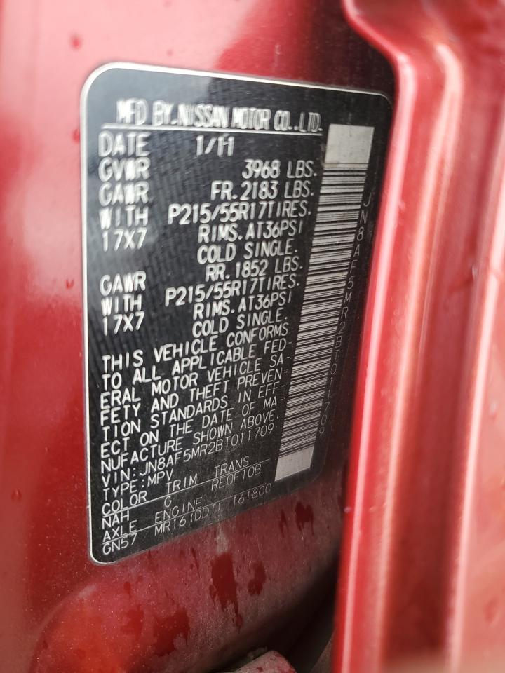 2011 NISSAN JUKE - JN8AF5MR2BT011709, колір - Бордовий, 1.6, Бензин, із США