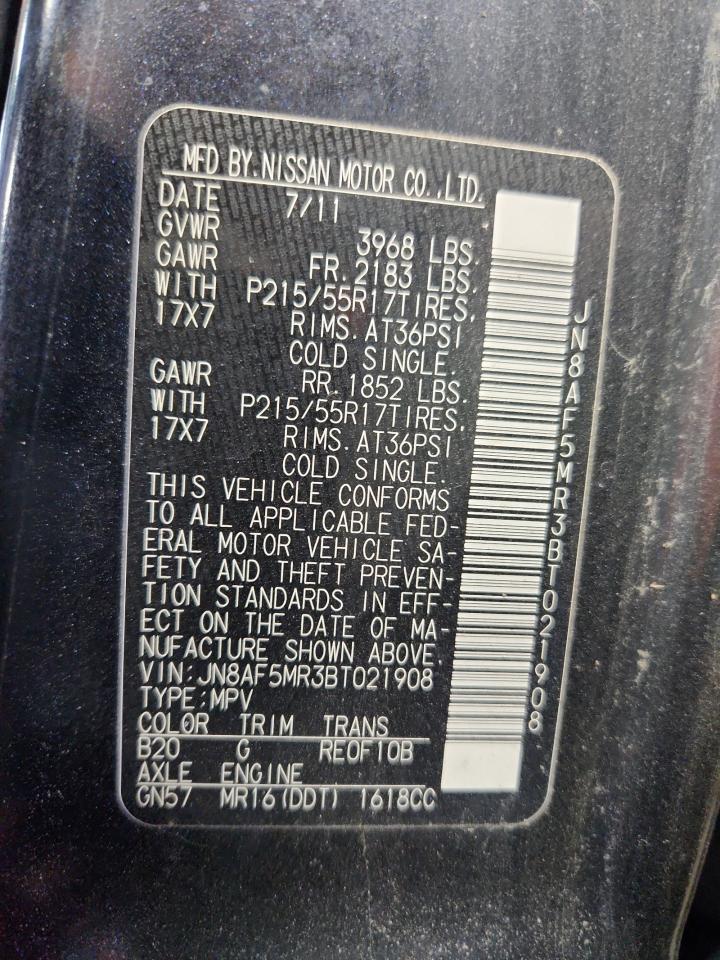 2011 NISSAN JUKE - JN8AF5MR3BT021908, колір - Чорний, 1.6, Бензин, із США