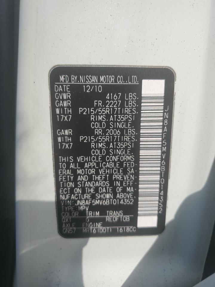 2011 NISSAN JUKE - JN8AF5MV6BT014352, колір - Білий, 1.6, Бензин, Повний привід із США