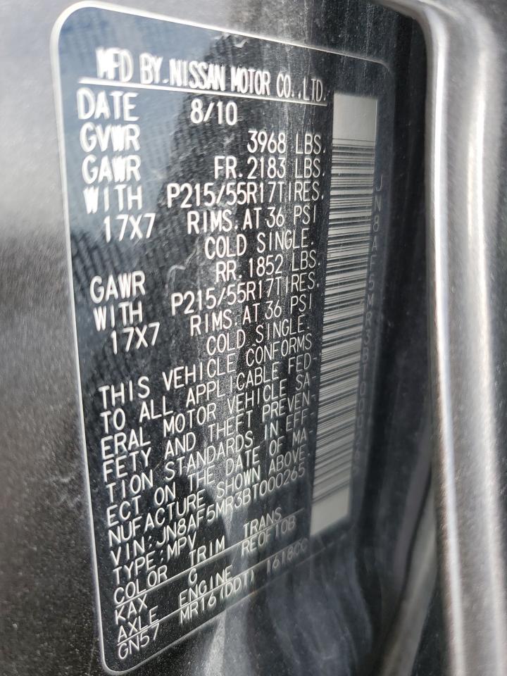 2011 NISSAN JUKE - JN8AF5MR3BT000265, колір - Деревне вугілля, 1.6, Бензин, із США