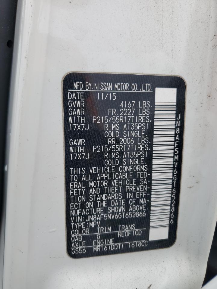 2016 NISSAN JUKE - JN8AF5MV6GT652866, колір - Білий, 1.6, Бензин, Повний привід із США