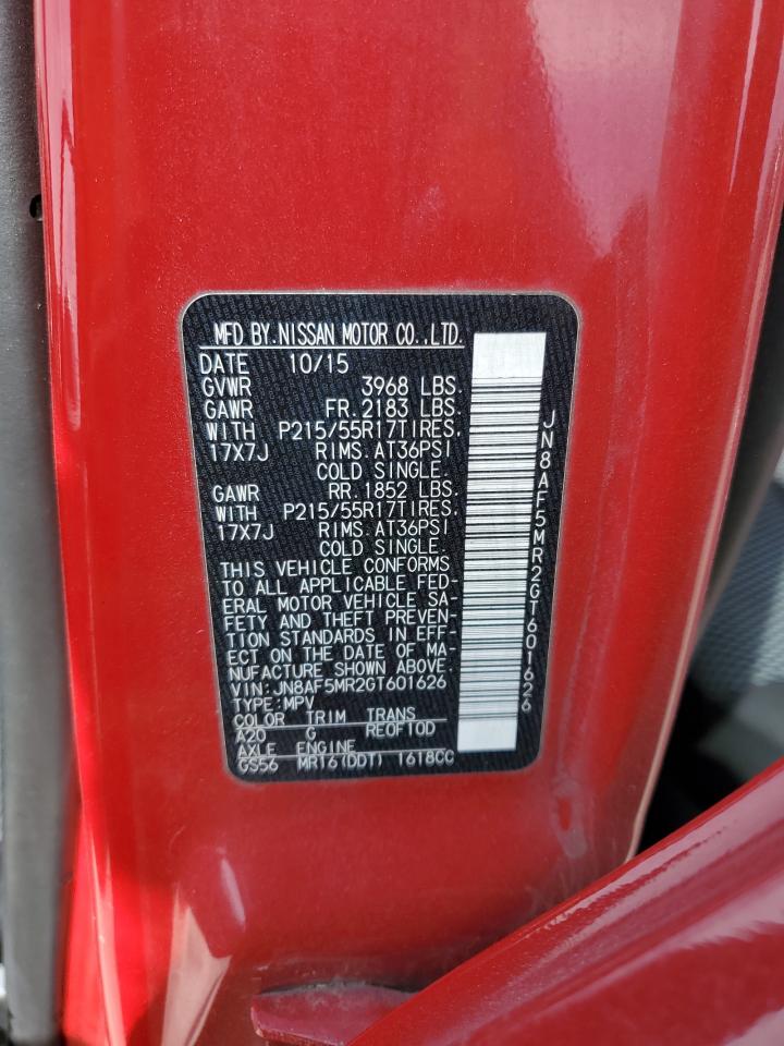 2016 NISSAN JUKE - JN8AF5MR2GT601626, колір - Червоний, 1.6, Бензин, із США