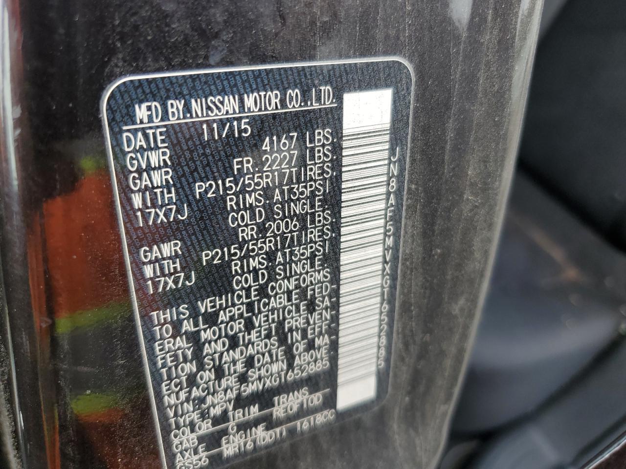 2016 NISSAN JUKE - JN8AF5MVXGT652885, колір - Чорний, 1.6, Бензин, Повний привід із США