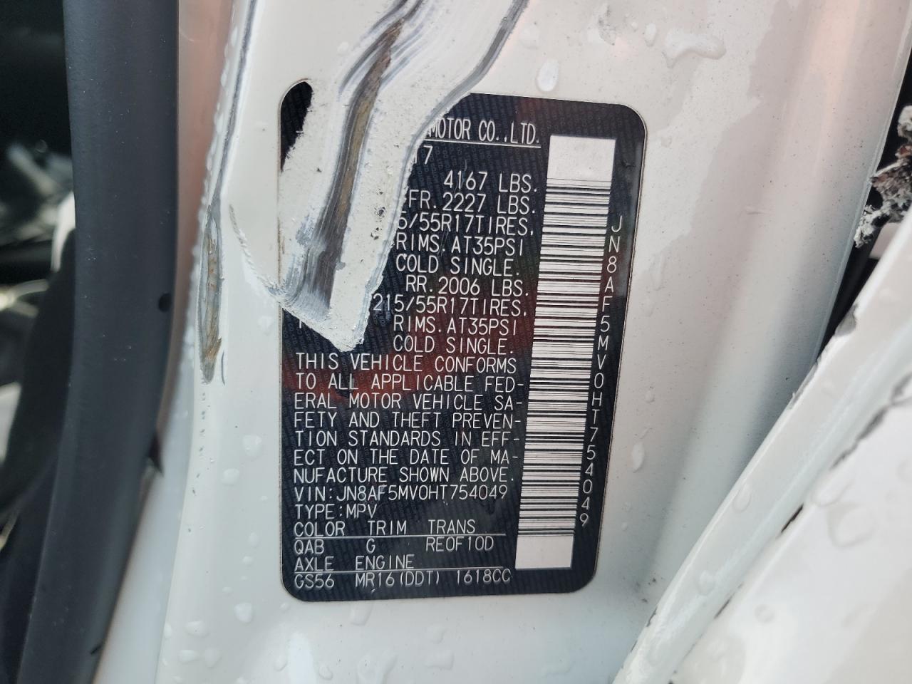 Колір БілийЦиліндри 4Привід Повний привідVIN JN8AF5MV0HT754049Стан НевідомоУшкодження По всьому авто