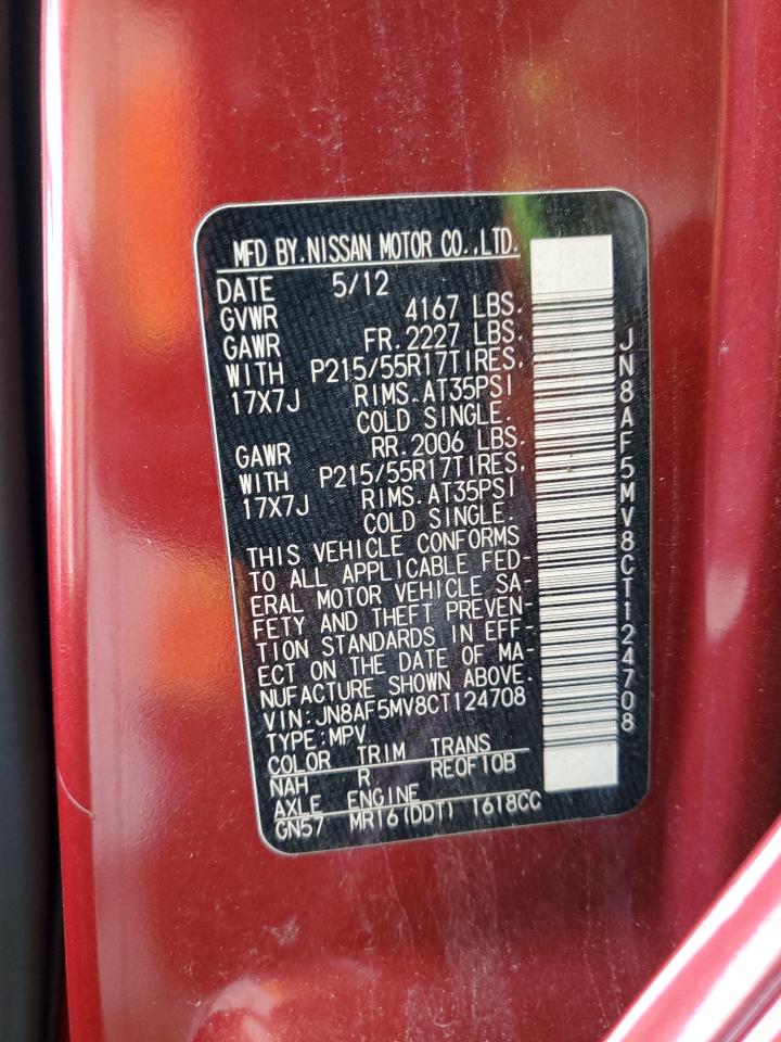 2012 NISSAN JUKE - JN8AF5MV8CT124708, колір - Червоний, 1.6, Бензин, Повний привід із США
