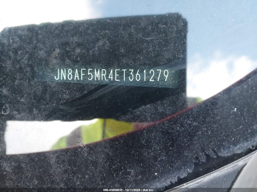 Колір ЧервонийЦиліндри 4Привід Передній привідVIN JN8AF5MR4ET361279Стан СтаціонарноУшкодження Ліва сторона