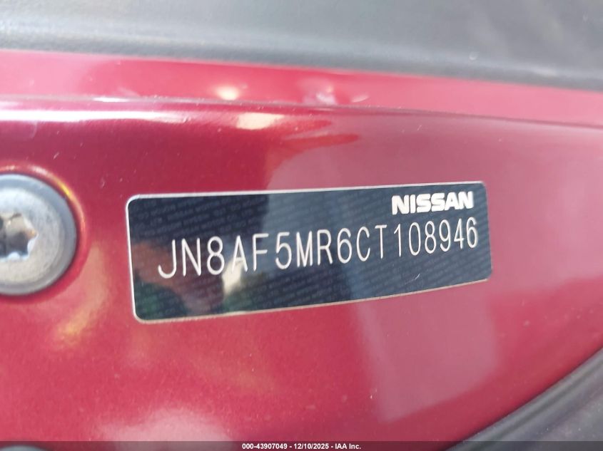 2012 NISSAN JUKE - JN8AF5MR6CT108946, колір - Бургундія, 1.6, Бензин, Передній привід із США