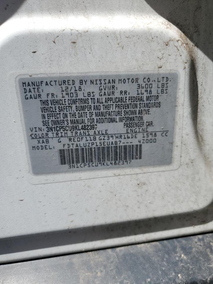 2019 NISSAN KICKS - 3N1CP5CU9KL482397, колір - Білий, 1.6, Бензин, із США
