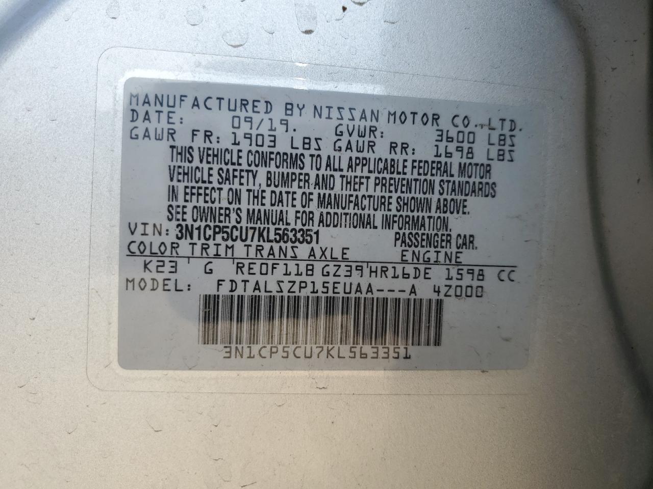 2019 NISSAN KICKS - 3N1CP5CU7KL563351, колір - Срібний, 1.6, Бензин, із США