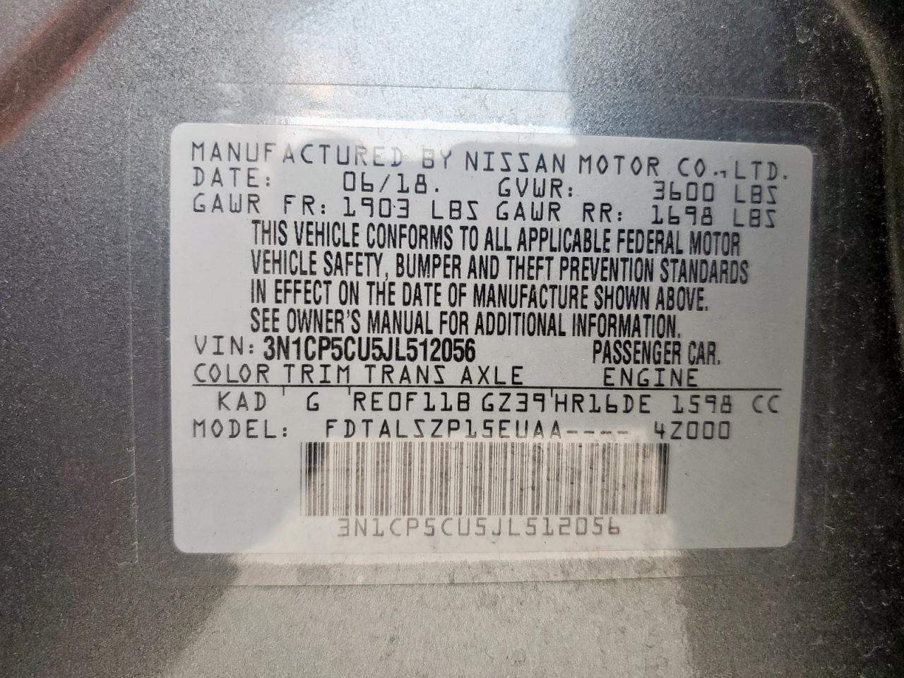 2018 NISSAN KICKS - 3N1CP5CU5JL512056, колір - Деревне вугілля, 1.6, Бензин, із США