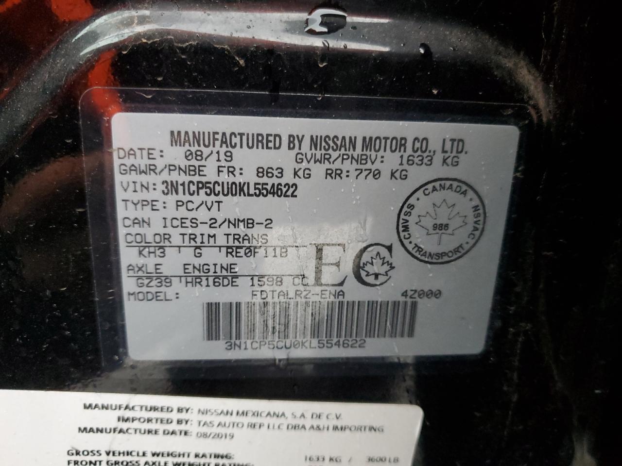 2019 NISSAN KICKS - 3N1CP5CU0KL554622, колір - Чорний, 1.6, Бензин, із США